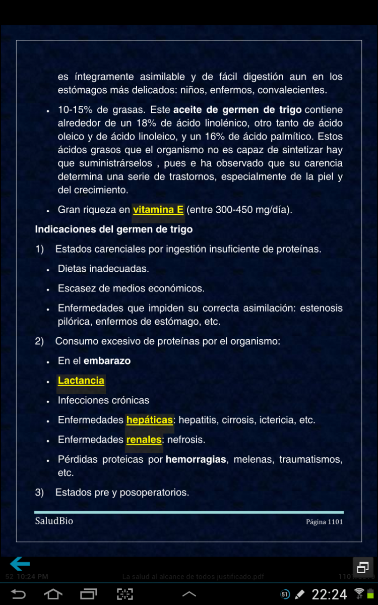 Las dos imágenes de arriba son de algunas páginas de La salud al alcance de todos en una tablet en visión nocturna con la aplicación Moon+ Reader Pro